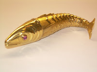 I must be honest and, although I LOVE fashion, admit that the jewelry on view stole the show. This exhibition was a collaborative effort with the National Jewelry Institute. This non-for-profit organization, under the leadership of jewelry historian Judith Price, preserves, researches, and exhibits fine jewelry all over the world. On view here were some FABULOUS things. My favorite was the Trophée de Vaillance (ca. 1941)brooch by Jean Schlumberger which belong to Diana Vreeland. Ms. Vreeland’s opinion on style was such that she thought that “without it, you’re nobody”, had another marvelous Schlumberger piece in the show: a a gold, sapphire, and ruby fish lighter (ca.1940’s). But back to the Trophée de Vaillance, which according to Ms. Price, was especially commissioned by Vreeland, who at the time was an editor at Harper’s Bazaar. This piece is so large that it can stand on its own and is made of 14K white gold, enamel, diamonds, with (a huge) amethyst and rubies. Other large pieces from larger-than-life women is an 18K gold handbag (1970)retailed by Vartanian & Sons which belonged to Jackie Kennedy Onassis and a stunning, almost life-size, Calla Lily brooch, owned by Fannie Hurts, which is made of enamel, topaz, and diamonds.